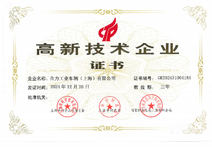 近日,合力工業(yè)車輛(上海)有限公司(以下簡稱“合力科技”)榮獲由上海市科學(xué)技術(shù)委員會、上海市財政局、國家稅務(wù)總局上海市稅務(wù)局聯(lián)合頒發(fā)的國家級“高新技術(shù)企業(yè)”證書,這是公司繼2021年后再次通過“高新技術(shù)企業(yè)”資格認(rèn)定。 “高新技術(shù)企業(yè)”是國家......
